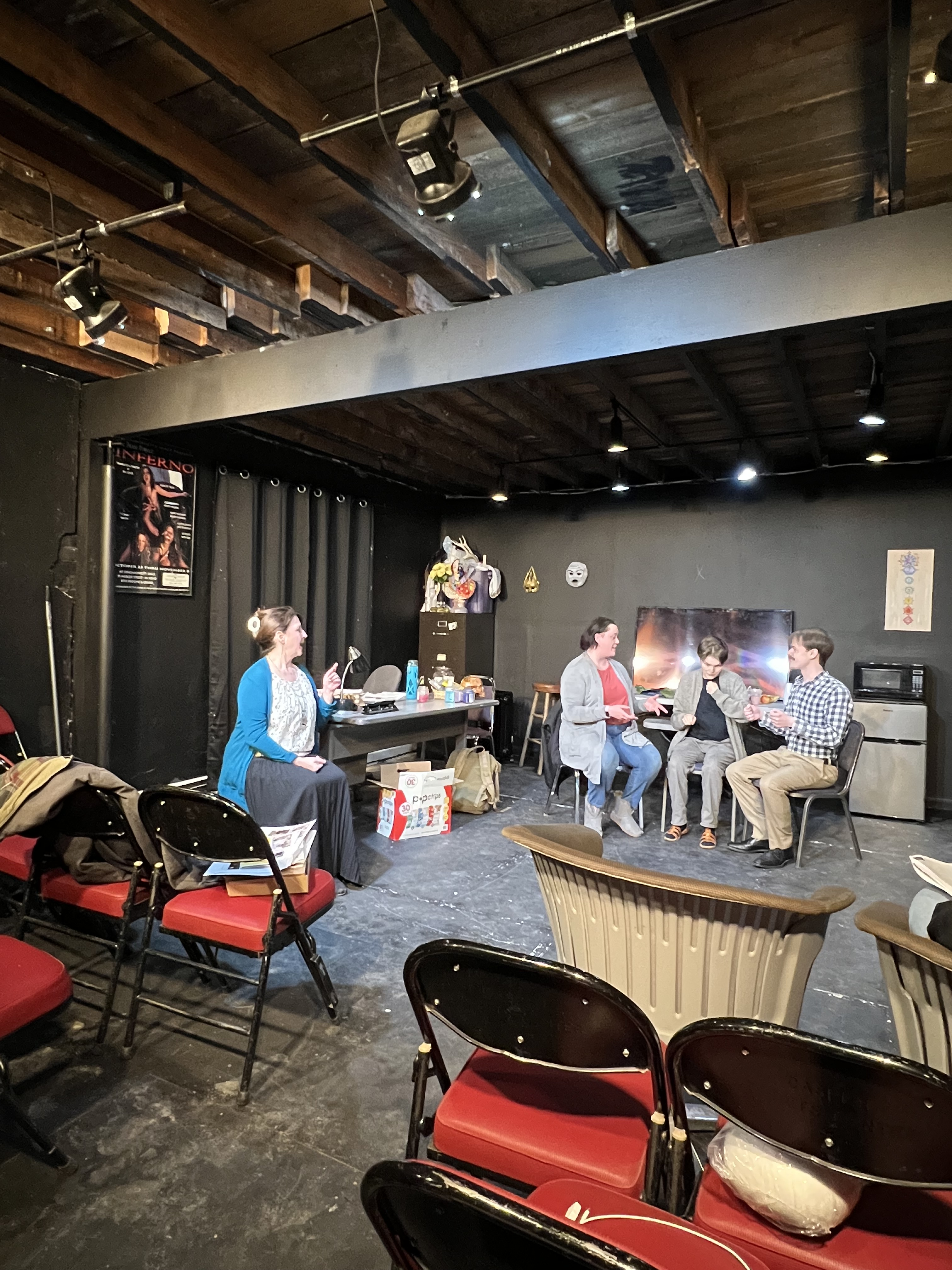 The Thanksgiving Play depicts a quartet of teachers and actors charged with devising a holiday play to honor “Native American Heritage Awareness Month”; what ensues is a plunge into cognitive dissonance driven by the group’s desire to reveal the “true” history of Thanksgiving in a forty-five minute production for elementary school children. These self-professed “white allies” pronounce the orthodoxy of wokeness with the eloquence of native (as it were) speakers of a jargon-laden cant that inevitably exposes their own inherent biases. At the same time, the play they are creating collapses in on itself due to the unbearable weight of the contradictions and paradoxes with which their efforts are fraught.