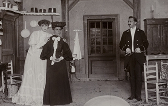 The author of Miss Julie, August Strindberg, realized that this new dramatic style demanded a new kind of theatre facility. At around the same time, Russian actor and director Konstantin Stanislavski realized that this new dramatic style demanded a new approach to acting. In his seminal essay, “The Preface to Miss Julie,” Strindberg declares the traditional proscenium theaters and their lavish auditoria unsuitable for the production of Naturalistic plays. He argued for smaller, more intimate venues that would permit flexible seating arrangements and closer proximity between the audience and the actors. Heavy stage make-up with painted-on frown lines and wrinkles would seem grotesque at close range, so Strindberg abolished it, along with the footlights that cast ghastly shadows on actors’ faces, and the canvas flats painted to look like the walls of a home or some other location. Meanwhile, in Moscow, it dawned on Stanislavski that his productions of Chekhov’s plays were failing because no one knew how to act them properly. Chekhov’s characters were too nuanced to be performed by actors equipped only with the stereotypies of the stock characters they played throughout their careers, what was known as their “lines of business.” Stanislavski understood that in order for actors to be effective in the portrayal of Chekhov’s complex characters, the actors needed time to study the character, develop a detailed description of the character’s past, and most importantly, find ways to connect what is happening to the characters with their own life experiences. This theorizing evolved into a practical “method” in which actors were (and still are) trained to evoke authentic feeling and seemingly spontaneous action and reaction in performance by means of various exercises and a lengthy rehearsal process. Ideally, actors should vanish in their roles, their personalities subsumed into their characters’, which results in performances that are as realistic and convincing as the sets on which these plays were staged.
