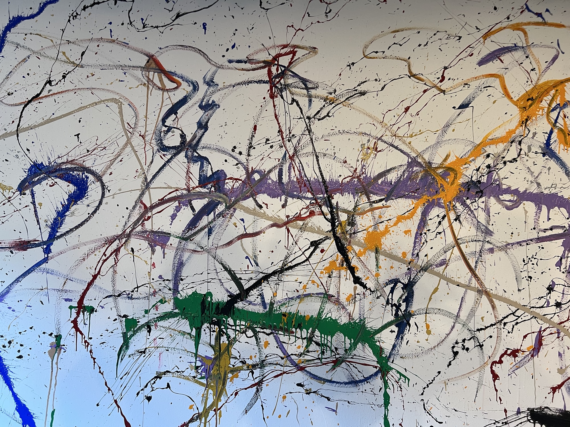 Splush ACT: A Happening. Bored with white walls, we invited the public up to the Studio to indulge in some mid-20th century style action painting. This activity is highly cathartic and strongly recommended for anyone needing to offset stress or get rid of old paint, or both.